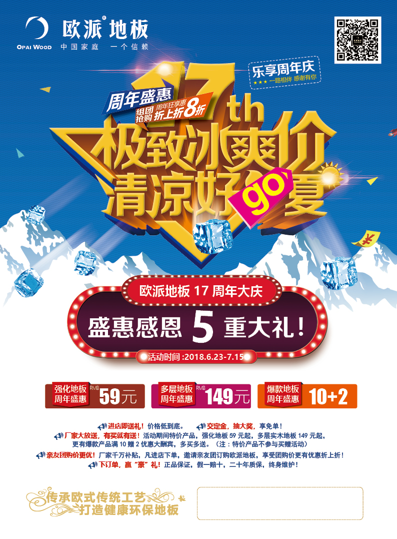 活動主題:歐派地板17周年慶冰爽盛惠