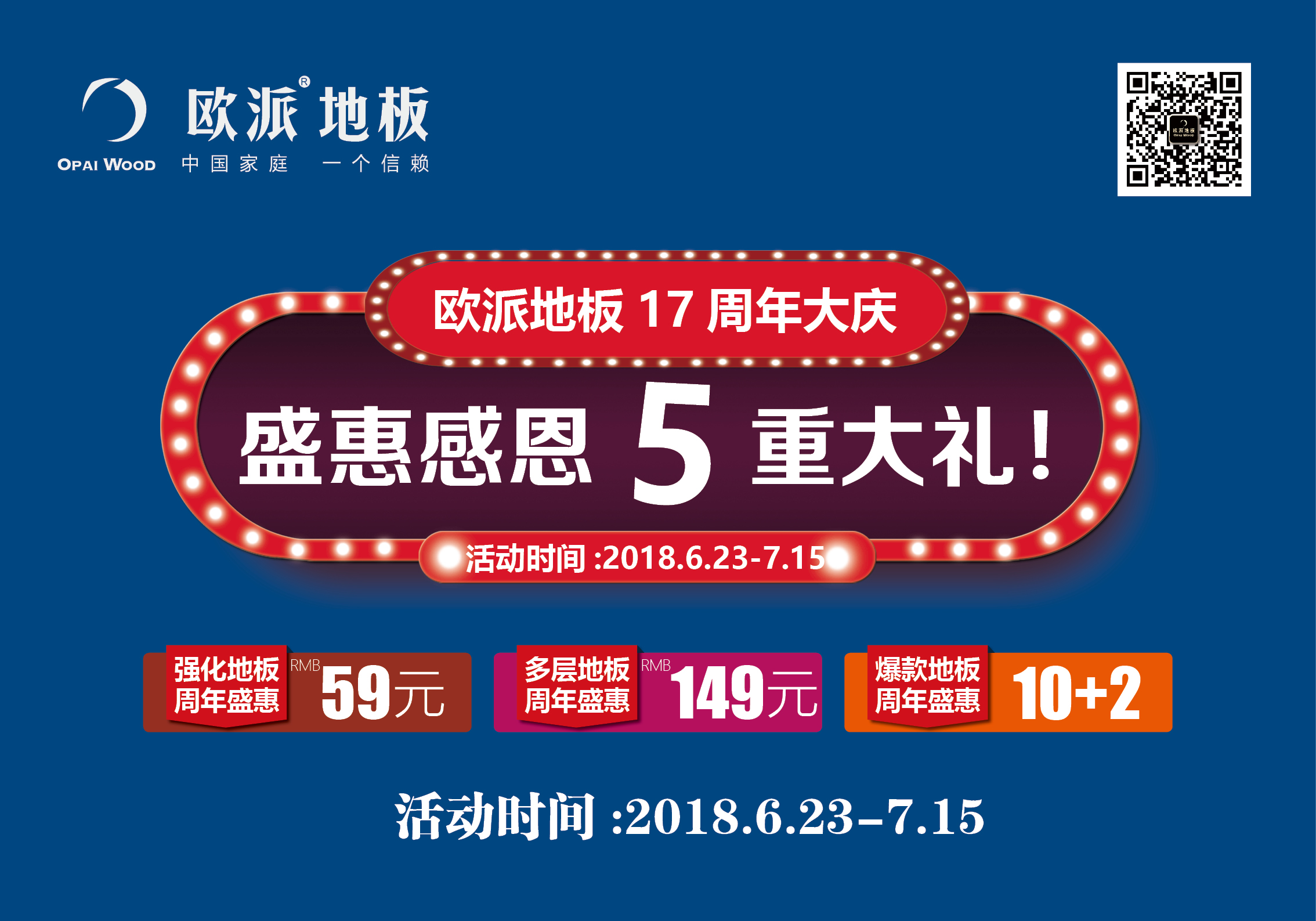 歐派地板17周年慶冰爽盛惠,只為將更好的地板提供給您!千家門店均有活動,期待您的光臨!