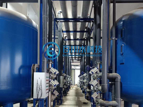 2、軟化水設備:預處理過濾后的水進入軟化水樹脂罐,通過離子交換降低原水硬度,軟化水進入反滲透系統,可降低反滲透膜的工作壓力。
